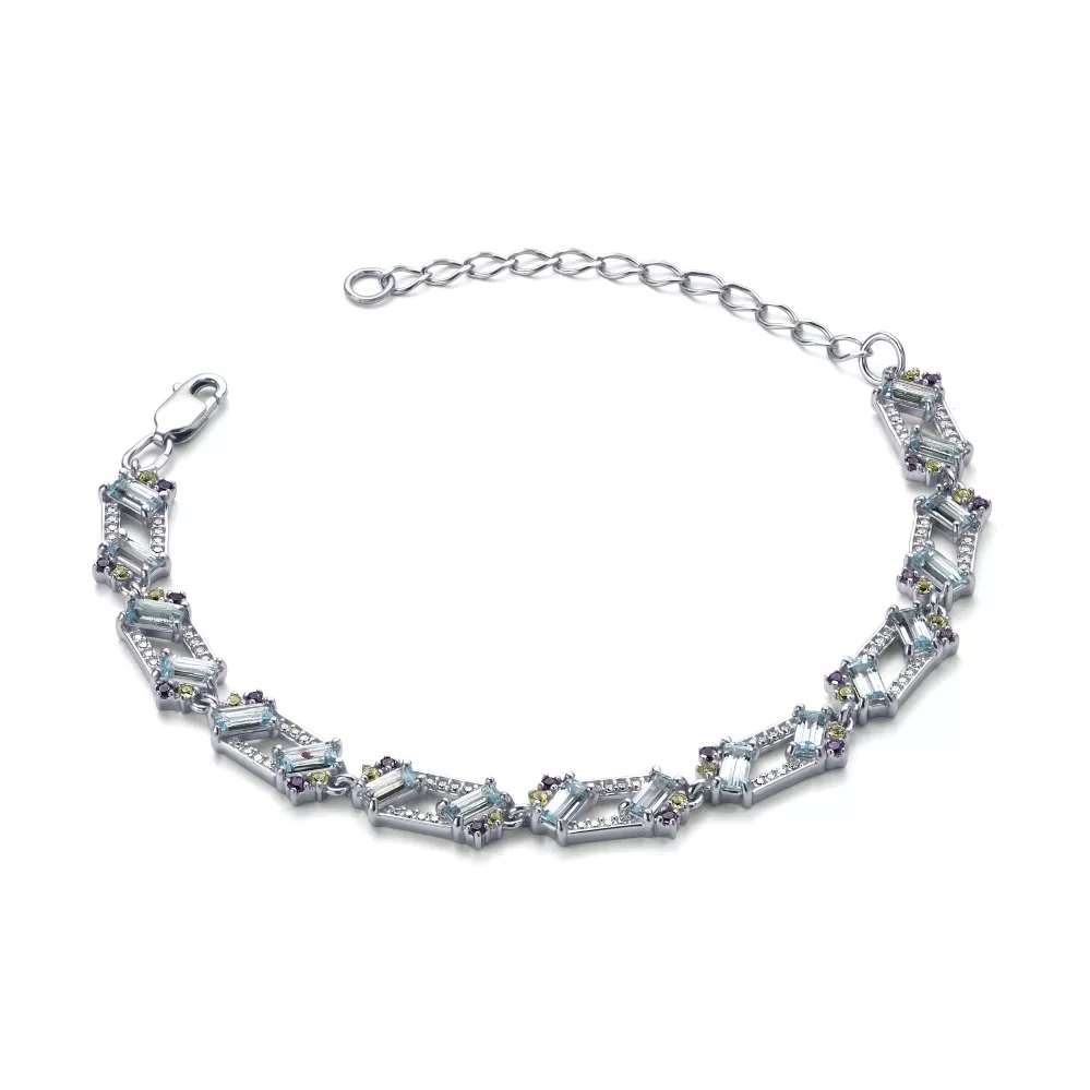 Браслет 405047-901-0019 Хризолит круг 1,5, Фианит бесцветный круг 1, Топаз голубой багет 2,5*5, Аметист фиолетовый круг 1,5