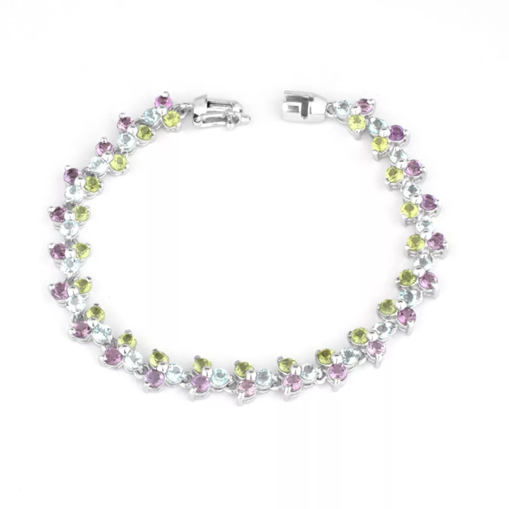 Браслет 400728-901-0019 Хризолит круг 3, Хризолит круг 3, Топаз голубой круг 3, Аметист фиолетовый круг 3