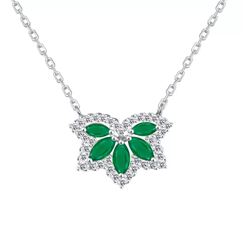 608393-075-0019 Колье (Ag 925) Фианит бесцветный круг 1,25, Фианит бесцветный круг 1, Агат зеленый маркиз 2,5*5, Агат зеленый марки