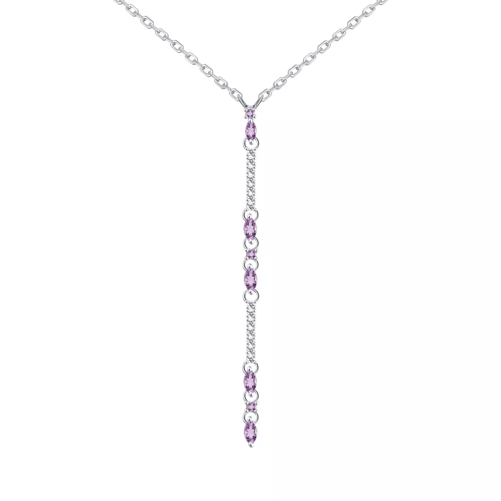 608389-901-0019 Колье (Ag 925) Фианит бесцветный круг 1,25, Фианит аметистовый круг 1,5, Аметист фиолетовый маркиз 2*4