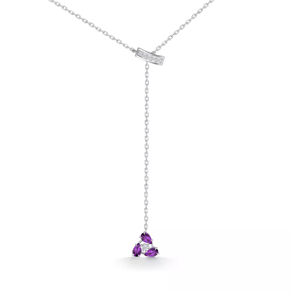 607797-001-0019 Колье (Ag 925) Фианит бесцветный круг 2, Фианит бесцветный круг 1,5, Аметист фиолетовый груша 3*5