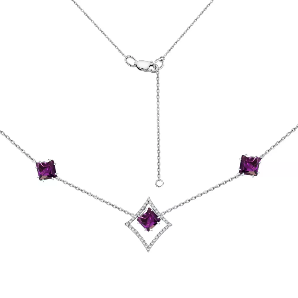 607783-001-0019 Колье (Ag 925) Фианит бесцветный круг 1, Аметист фиолетовый квадрат 6