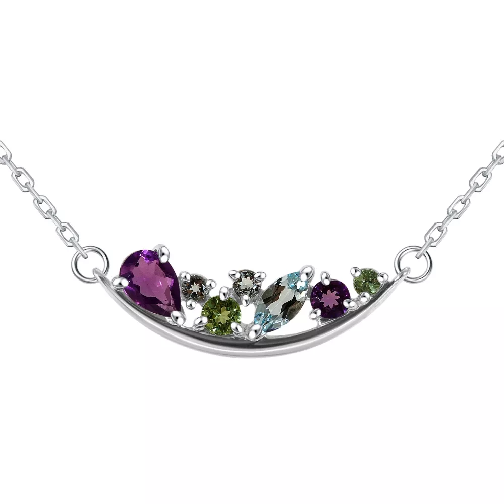 606990-901-0019 Колье (Ag 925) Хризолит круг 2, Хризолит круг 3, Топаз голубой круг 2, Топаз голубой маркиз 3*6, Аметист фиолетовый