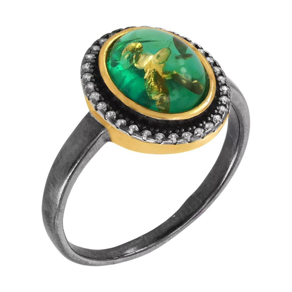 71318074 Кольцо (Ag 925) Янтарь(аквамарин)/фианит