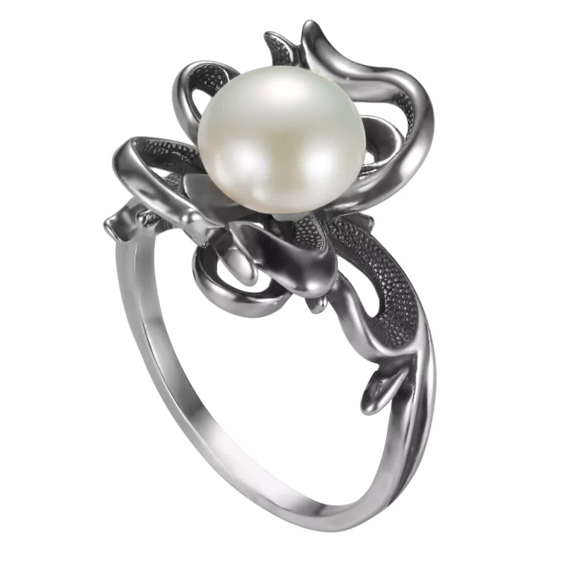 1-1076-410 Кольцо (Ag 925) жемчуг белый культ.