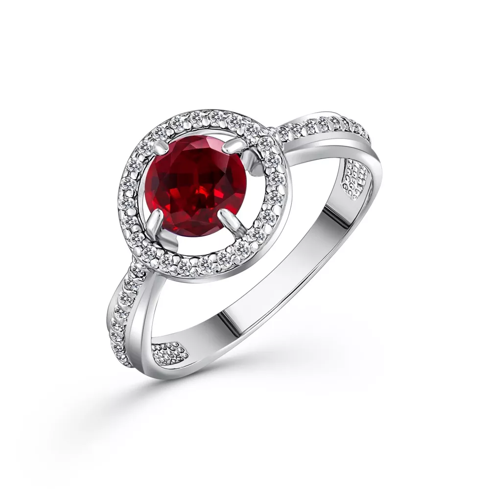106941-603-0019 Кольцо (Ag 925) Фианит бесцветный круг 1, Рубин круг 6
