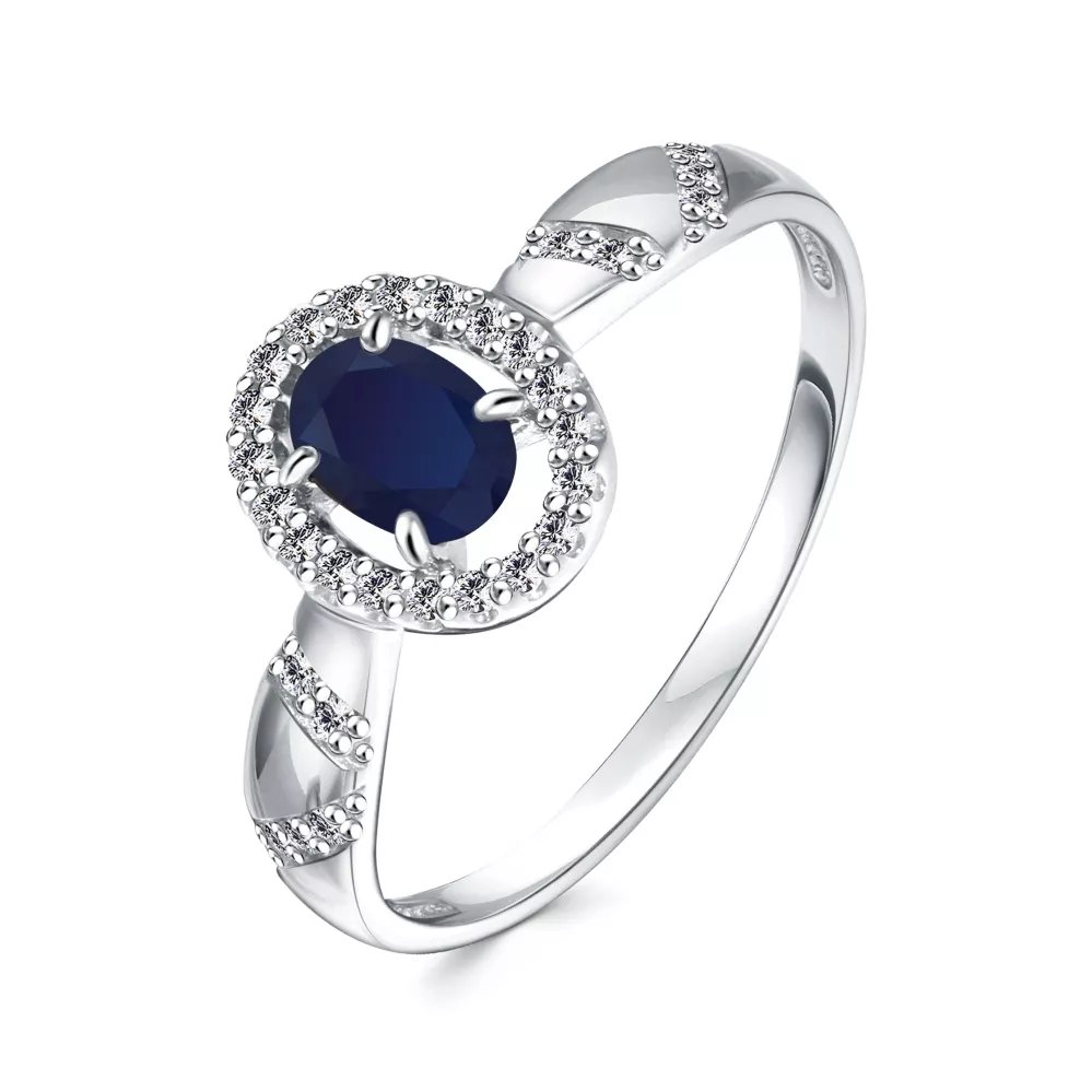 107364-602-0019 Кольцо (Ag 925) Фианит бесцветный круг 1, Сапфир овал 4*6