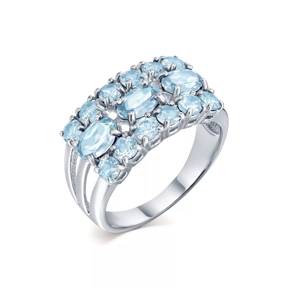 104873-002-0019 КОЛЬЦО (Ag 925) Топаз голубой круг 3, Топаз голубой овал 4*6