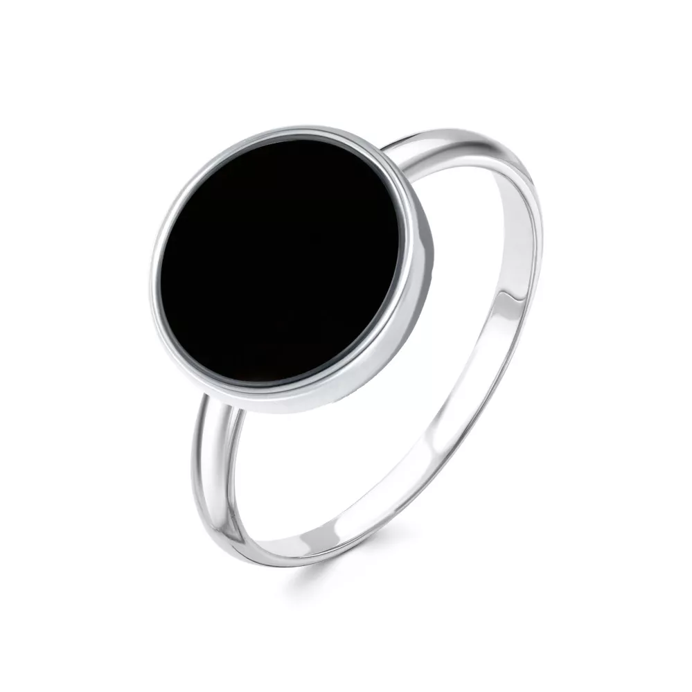 108998-094-0019 Кольцо (Ag 925) Агат черный круг площадка 10
