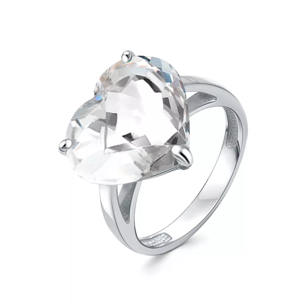 108296-015-0019 Кольцо (Ag 925) Горный хрусталь сердце 13*14