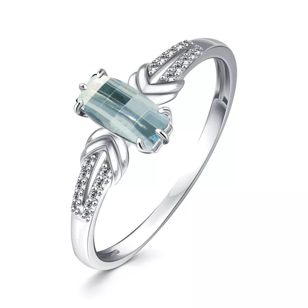 109227-002-0019 Кольцо (Ag 925) Фианит бесцветный круг 1, Фианит бесцветный круг 0,8, Топаз голубой долька 4*8