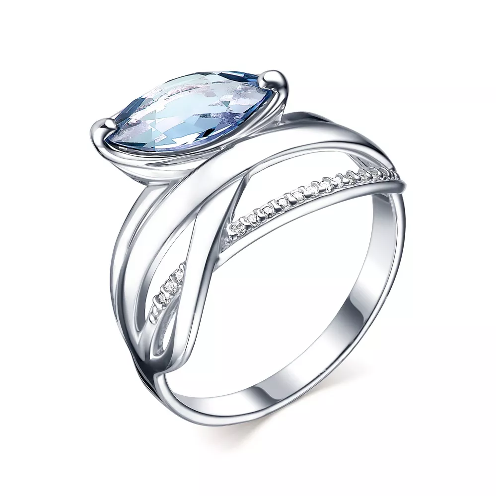 104230-002-0019 Кольцо (Ag 925) Фианит бесцветный круг 1, Топаз голубой маркиз 6*12