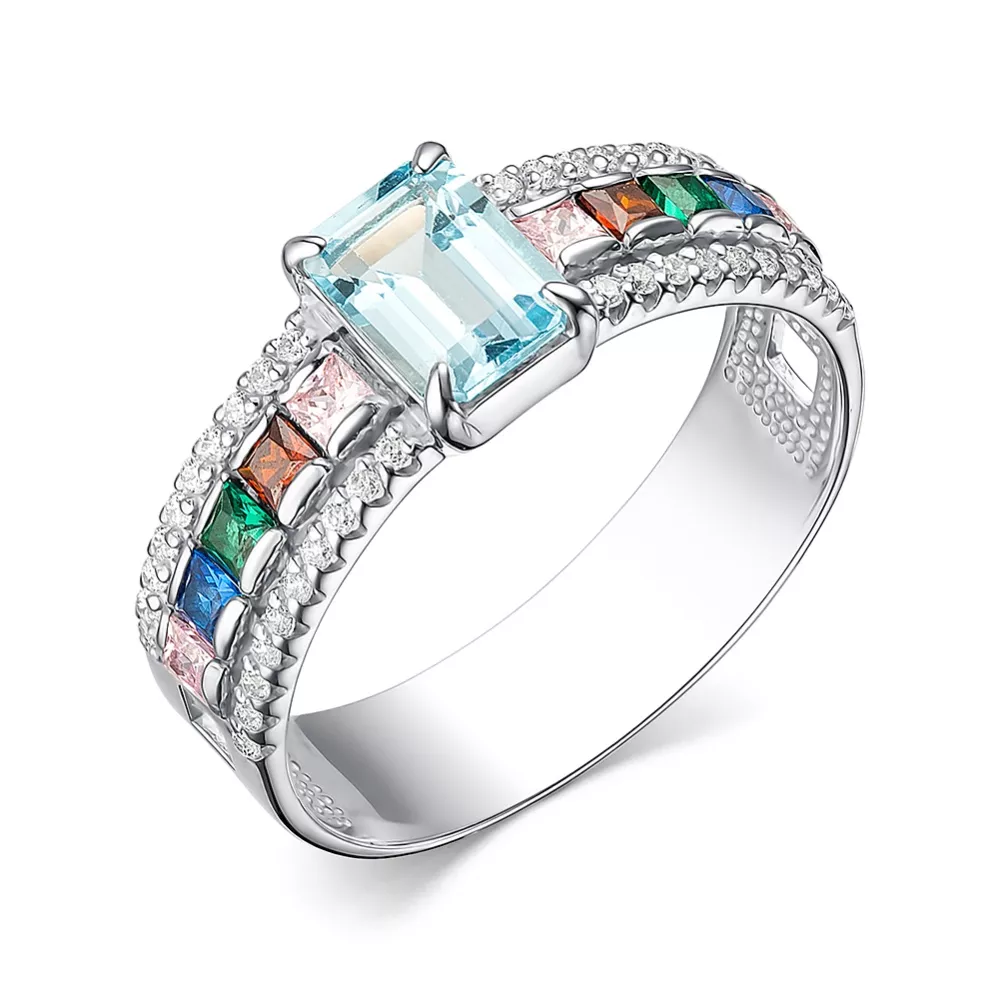 107411-901-0019 Кольцо (Ag 925) Фианит сапфировый квадрат 2, Фианит розовый квадрат 2, Фианит зеленый квадрат 2, Фианит гранат-конья