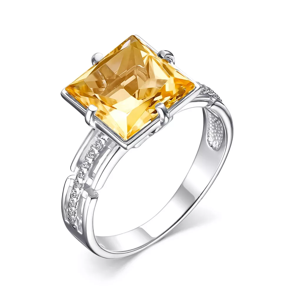 105001-007-0019 Кольцо (Ag 925) Цитрин квадрат 10, Фианит бесцветный круг 1