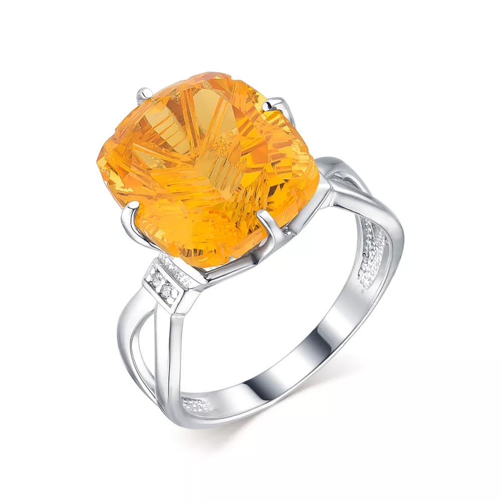 104165-007-0019 Кольцо (Ag 925) Цитрин багет фантазия 12*14, Фианит бесцветный круг 1