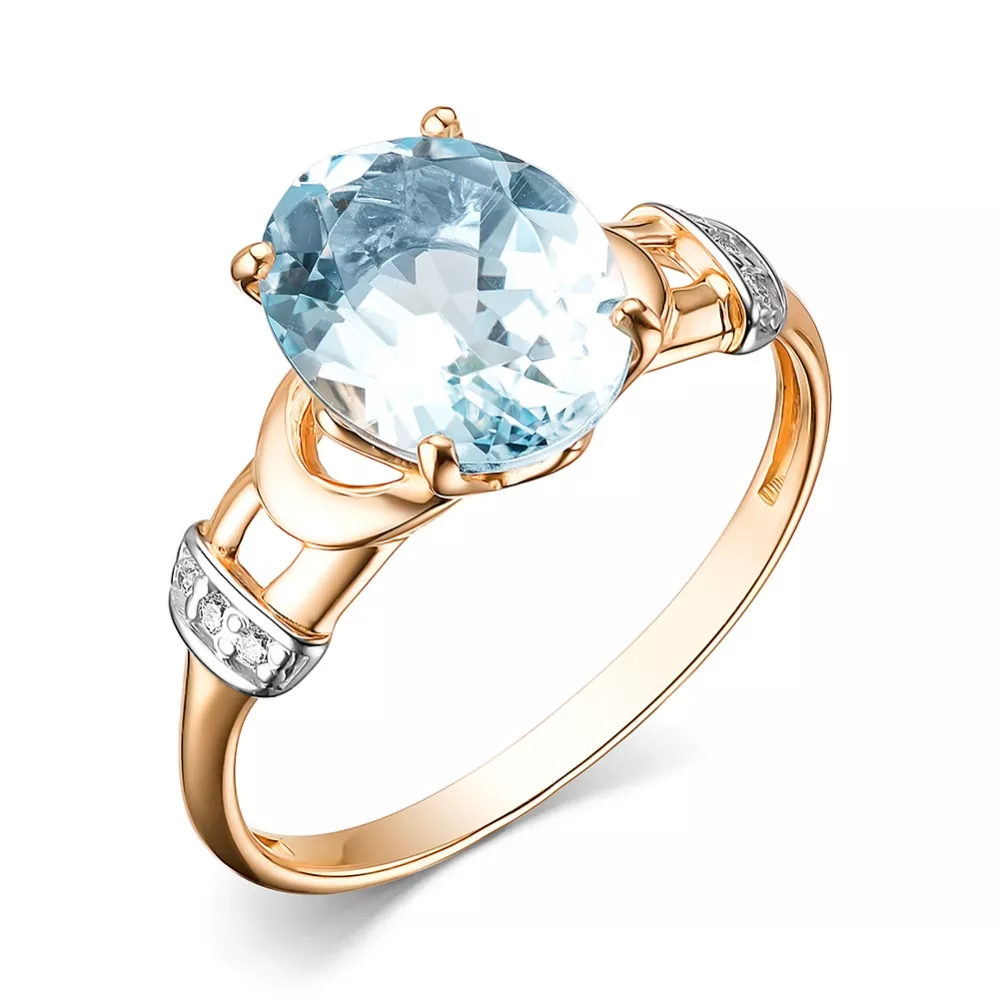 107280-002-0039 Кольцо (Ag 925) Фианит бесцветный круг 1,1, Топаз голубой овал 8*10