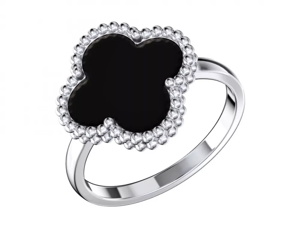 Кольцо 0101809-00185 Ag 925 1 Агат клевер 12,00*12,00 1,68 ct чёрный