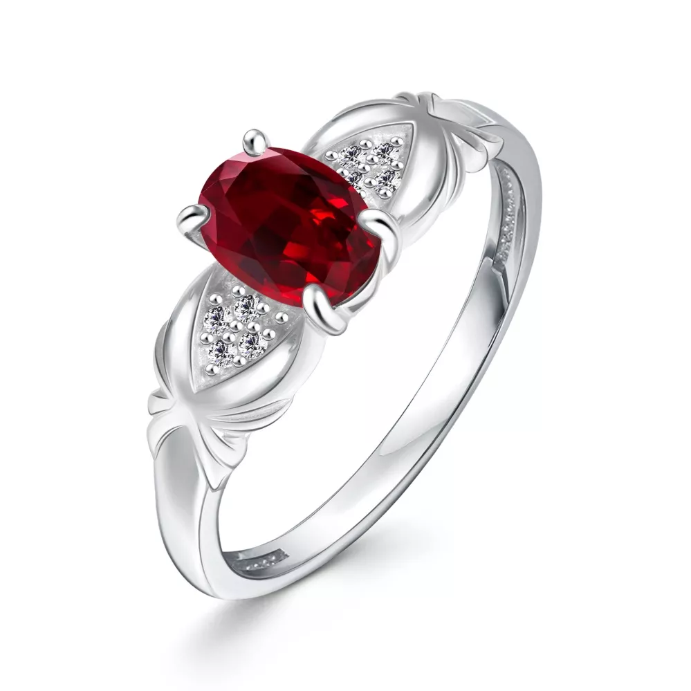 Кольцо 107025-603-0019 Фианит бесцветный круг 1, Рубин овал 5*7
