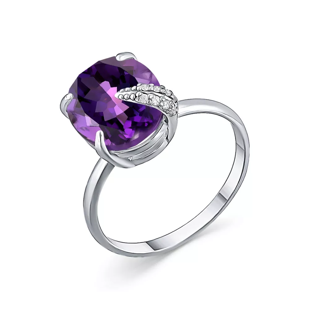 106640-001-0019 Кольцо (Ag 925) Фианит бесцветный круг 1, Аметист фиолетовый овал 10*12