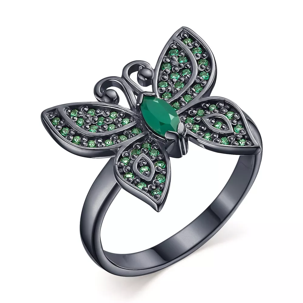 Кольцо 105005-901-0209 Фианит зеленый круг 1, Агат зеленый маркиз 3*6