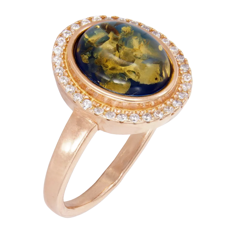 51228074 Кольцо (Ag 925) Янтарь(голубой)/фианит