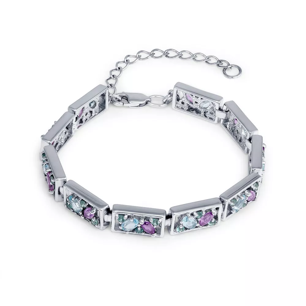 405012-901-0019 Браслет (Ag 925) Топаз голубой овал 3*5, Празиолит круг 2, Аметист фиолетовый маркиз 2,5*5
