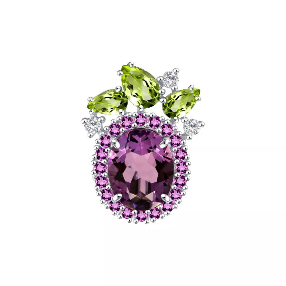 Хризолит, Фианит бесцветный, Аметист фиолетовый, Фианит аметистовый