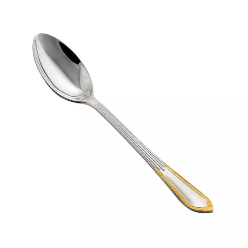 Ложка чайная из набора "Ампир". Аккуратная и удобная ложка выполнена из серебра 925°. Изделие с изысканным дизайном и красивым позолоченным узором на черенке станет замечательным подарком ценителям прекрасного.