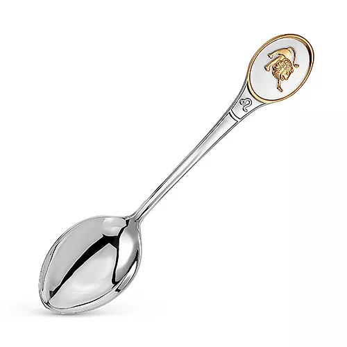 Аккуратная и удобная ложка выполнена из серебра 925°. В верхней части черенка изображен позолоченный знак гороскопа – Лев. Поверхность ложки отполирована вручную, что придает изделию невероятный блеск.