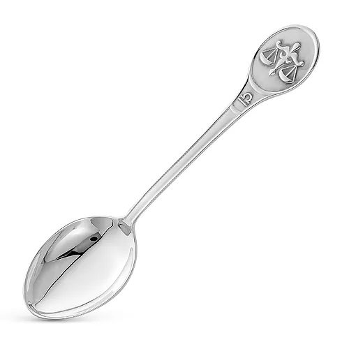 Аккуратная и удобная ложка выполнена из серебра 925°. В верхней части черенка изображен знак гороскопа – Весы. Поверхность ложки отполирована вручную, что придает изделию невероятный блеск.