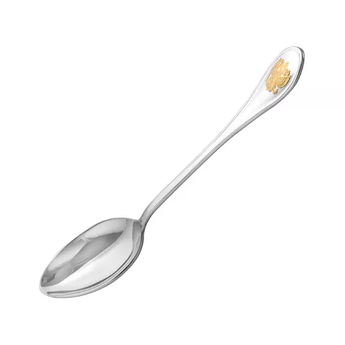 Ложка чайная из набора "Отечество" Серебряная чайная ложка выполнена из серебра 925°. На черенке ложки расположен позолоченный двуглавый орел, который символизирует единство и суверенитет России. Она станет прекрасным подарком и сувениром товарищу по работе или другу.
