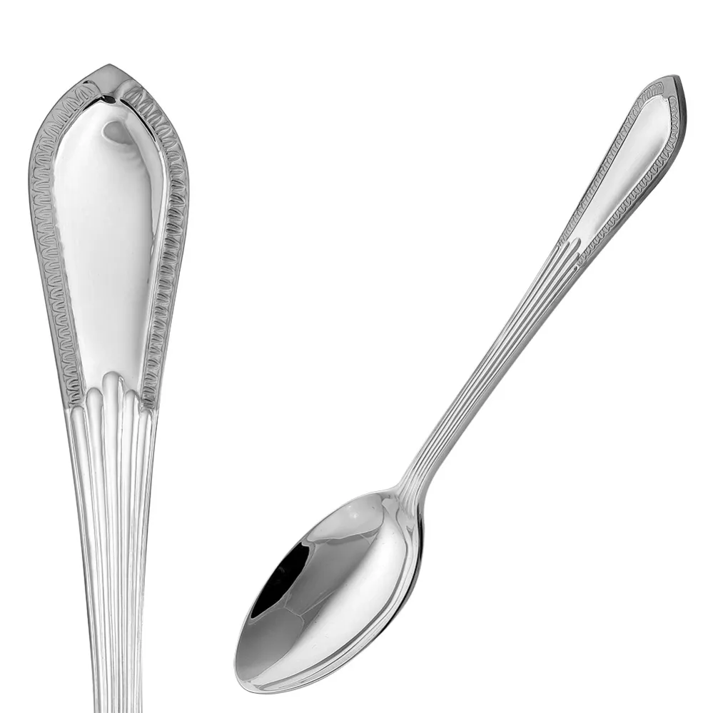 Ложка чайная из набора "Ампир" Аккуратная и удобная ложка выполнена из серебра 925°. Изделие с изысканным дизайном и красивым узором на черенке станет замечательным подарком ценителям прекрасного.