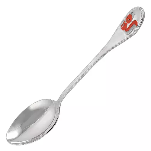 Красивая детская ложечка выполнена из высококачественного серебра 925ׄ°. В верхней части черенка изображена Белочка, декорированная высококачественной яркой эмалью. Поверхность ложки отполирована вручную, что придает изделию невероятный блеск. Серебряная чайная ложка «Белочка» с эмалью - изумительный подарок ребенку.