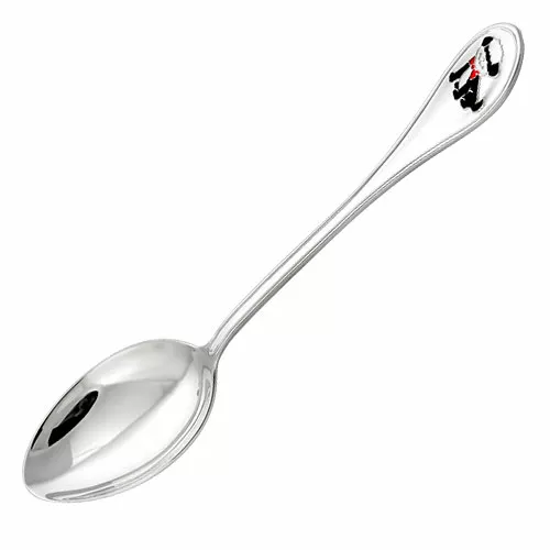 Красивая детская ложечка выполнена из высококачественного серебра 925ׄ°. В верхней части черенка изображена Собачка, декорированная высококачественной яркой эмалью. Поверхность ложки отполирована вручную, что придает изделию невероятный блеск. Серебряная чайная ложка «Собачка» с эмалью - изумительный подарок ребенку.