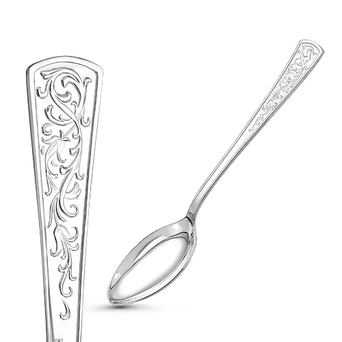 Ложка столовая из набора "Стиль". Аккуратная и удобная ложка выполнена из серебра 925°. Изысканный дизайн, с красивым позолоченным узором на черенке, идеально подойдет для первых и вторых блюд.